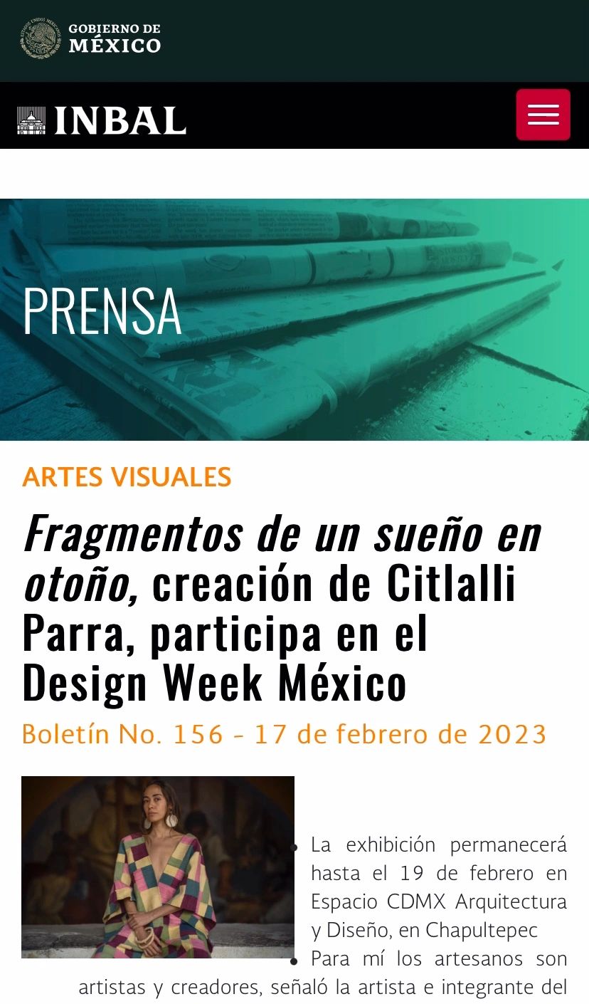 Citlalli Yocelín Parra Sánchez presenta la exposición Fragmentos de un sueño en otoño, en Design Week México 2022, integrante del Centro Cultural Ignacio Ramírez El Nigromante, del Instituto Nacional de Bellas Artes y Literatura (Inbal), a través de la Subdirección General de Educación e Investigación Artísticas.